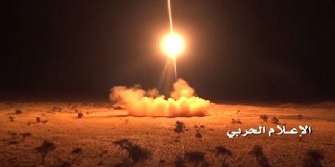 استهدف الجيش اليمني بعدد من الصواريخ البالستية مساء اليوم مهبطاً لمروحيات الأباتشي تابعاً لجيش النظام السعودي وسكن الطيارين في منطقة نجران.