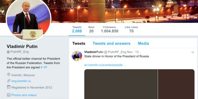 ونقلت رويترز عن متحدث باسم الشركة قوله أمس “أوقفنا الحساب (بوتين آر إف إنج) لانتحاله شخصية وذلك بناء على تقرير تلقيناه من مسؤولين روس” مضيفا “إن الحساب الموقوف لا يخص بوتين”.