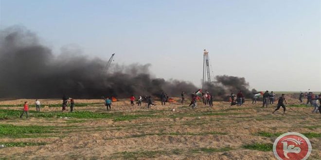 ونقلت وكالة الأنباء الفلسطينية وفا عن مصادر طبية قولها: إن قوات الاحتلال الإسرائيلي أطلقت الرصاص الحي وقنابل الغاز السام على آلاف الفلسطينيين المشاركين في مسيرات العودة ما أدى إلى إصابة العشرات بجروح وحالات اختناق في منطقة ملكة شرق قطاع غزة وجباليا شمال القطاع وخان يونس جنوبه.