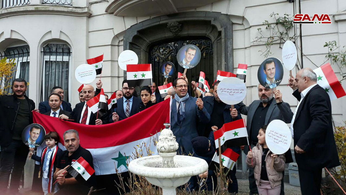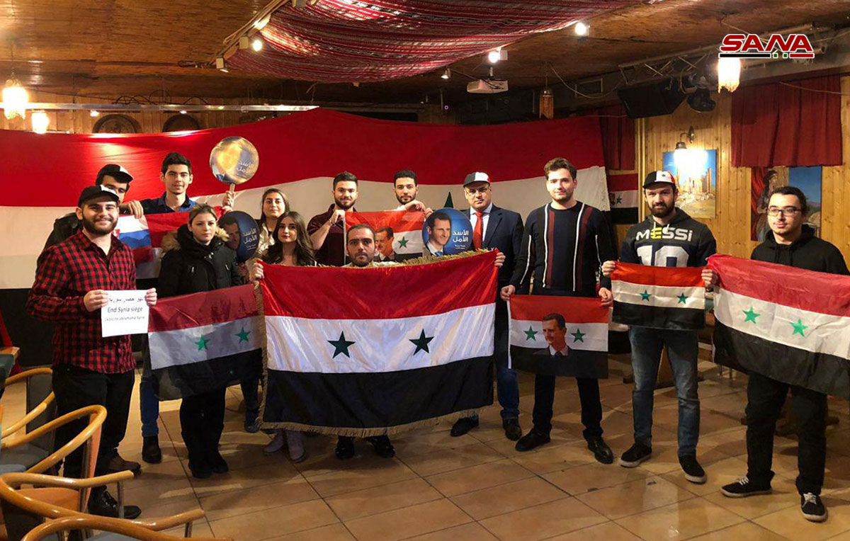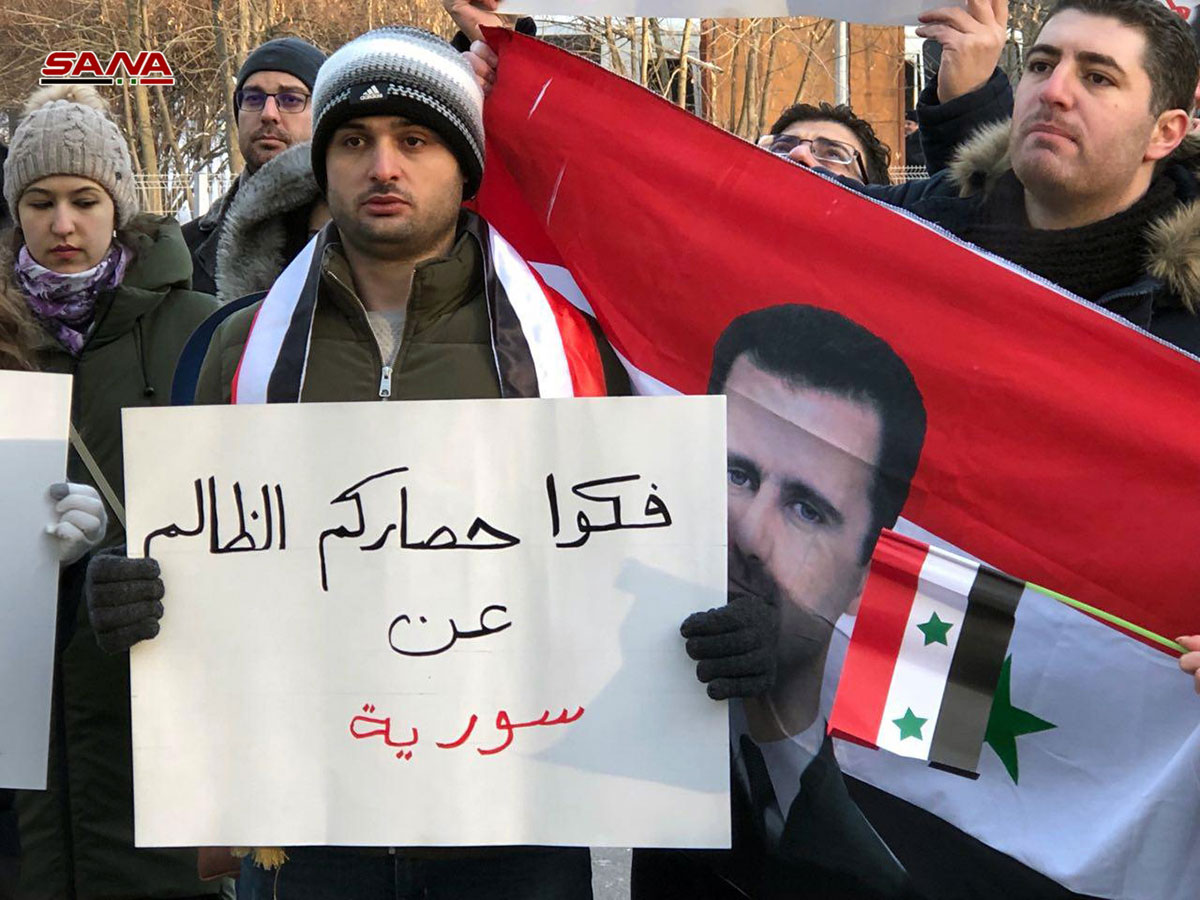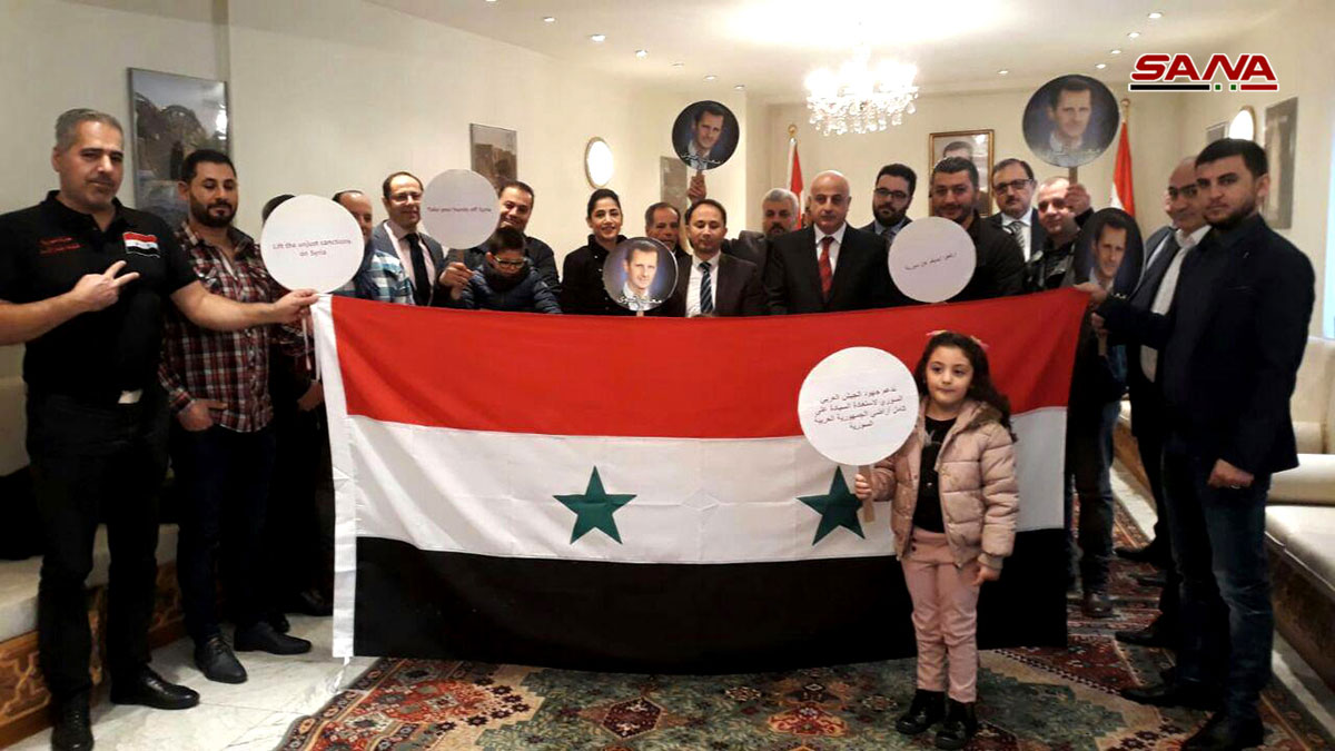 وفي ألمانيا نظم فرع الاتحاد الوطني لطلبة سورية وقفة تضامنية معبرين في بيان وجهوه إلى المفوضية الأوروبية عن رفضهم للحصار الجائر المفروض على سورية بالتزامن مع الحرب الإرهابية التي تشن عليها.