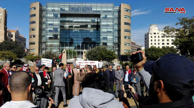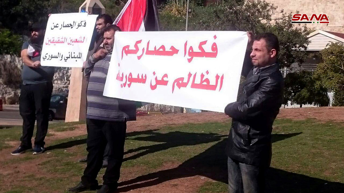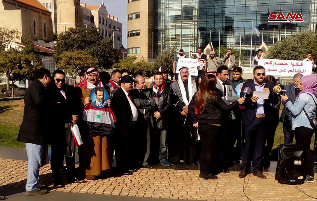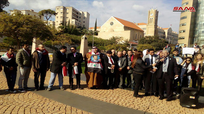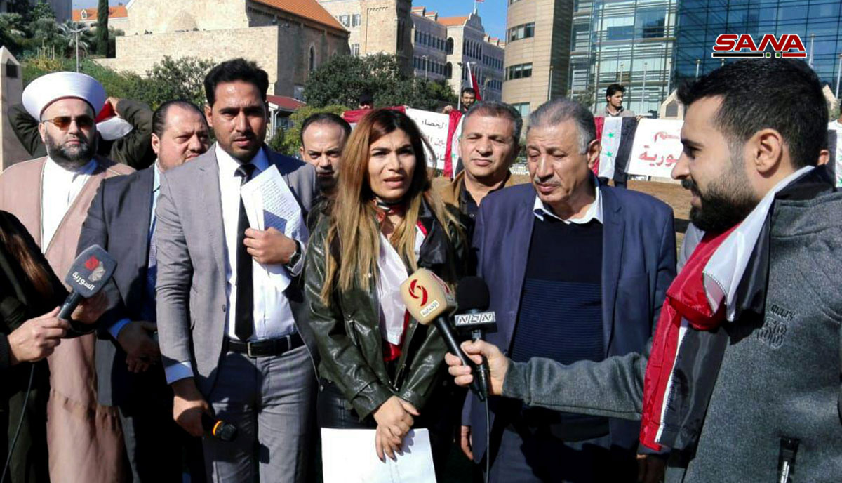 وفي العاصمة اللبنانية بيروت أقام فرع الاتحاد الوطني لطلبة سورية ورابطة العمال السوريين بمشاركة المنظمات الشبابية والطلابية الوطنية اللبنانية وقفة تضامنية أمام مقر الأمم المتحدة الأسكوا للتنديد بالإجراءات القسرية الغربية أحادية الجانب على سورية.