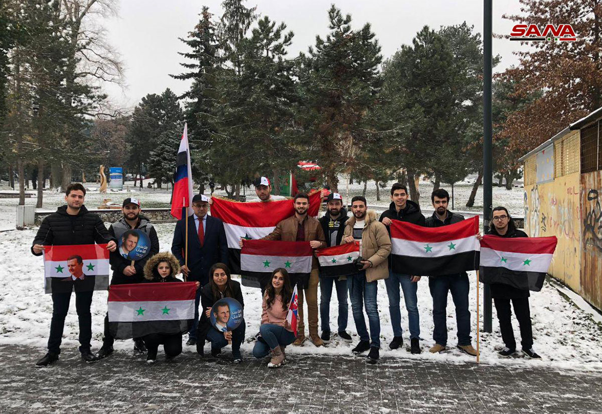وفي العاصمة التشيكية براغ نظم فرع تشيكيا للاتحاد الوطني لطلبة سورية وقفة تضامنية حيث أكد الطلبة وأبناء الجالية السورية شجبهم ورفضهم لكل أشكال الحصار والإجراءات الاقتصادية الجائرة التي اتخذتها الدول الغربية ضد سورية مطالبين المجتمع الدولي بإدانتها بشدة والوقوف إلى جانب سورية في تصديها للإرهاب والإرهابيين.