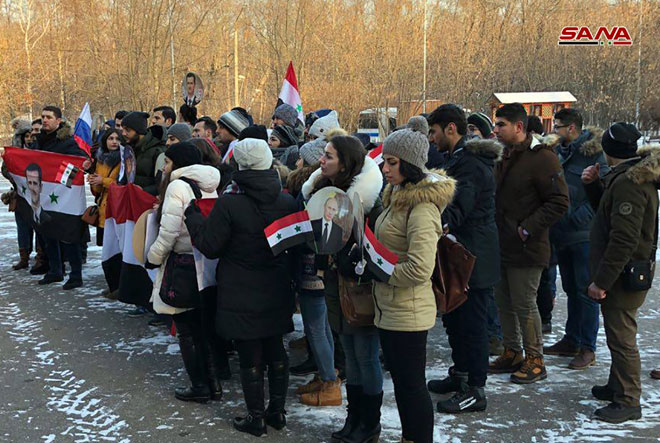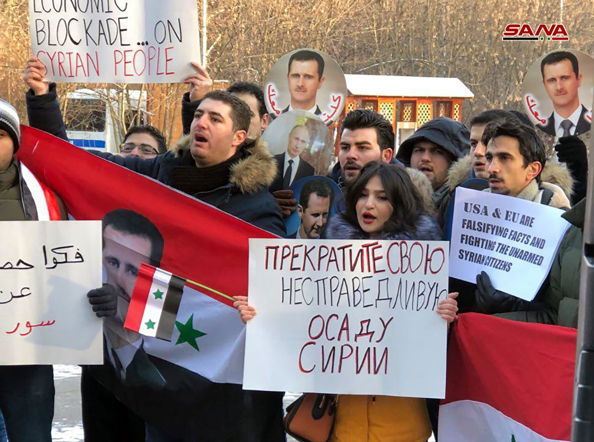 وفي موسكو دعا الطلبة السوريون الدارسون في الجامعات الروسية خلال تجمعهم في وسط موسكو بالتعاون مع زملائهم الروس وأبناء الجالية السورية ومنظمة حزب البعث العربي الاشتراكي في موسكو إلى إنهاء العقوبات الجائرة التي تفرضها دول الاتحاد الأوروبي على سورية.