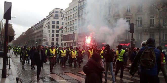 احتجاجات ومظاهرات “السترات الصفراء” بدأت في السابع عشر من تشرين الثاني الماضي ضد ارتفاع الضرائب والأسعار وتكاليف المعيشة وشارك فيها نشطاء من كل التيارات السياسية بما فيها أقصى اليمين الذي حملته الحكومة الفرنسية مسؤولية أحداث العنف بينما حافظ المحتجون على الطابع السلمي للاحتجاجات التي أصيب خلالها المئات.