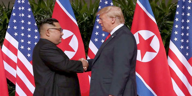 وكان ترامب وكيم عقدا في حزيران الماضي قمة تاريخية في سنغافورة وقعا خلالها اعلانا حول نزع السلاح النووي غير أن المفاوضات لم تحرز أي تقدم ملحوظ منذ ذلك الحين بسبب سياسات الولايات المتحدة المتعنتة واستمرارها في فرض العقوبات على كوريا الديمقراطية.