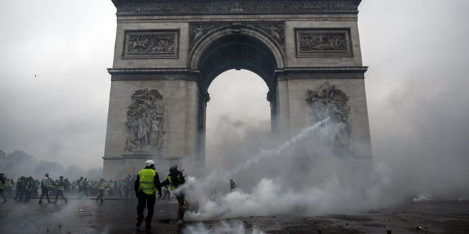 وكان محتجون من ذوي السترات الصفراء أمس قاموا بإحراق السيارات ورمي الحجارة على الشرطة احتجاجا على سياسات الرئيس الفرنسي ايمانويل ماكرون ووصفوا حكومته بأنها “لا تهتم بمشاكل الناس العاديين” فيما ردت الشرطة بالقمع وقنابل الغاز المسيل للدموع ومدافع المياه وأغلقت عشرات الشوارع ومحطات مترو الانفاق أثناء محاولتها احتواء الاحتجاجات التي بدأت بسبب زيادة الضرائب على أسعار الوقود ثم اتسعت لتشمل جملة من المطالب المتعلقة بارتفاع تكاليف المعيشة في فرنسا.