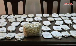 وضبطت الجهات المختصة في الـ 16 من الشهر الماضي سيارة محملة بكمية كبيرة من الحبوب المخدرة الكبتاغون على طريق حمص كانت معدة للتهريب ضمن 42 بابا خشبيا تم تجهيزها لهذه الغاية.