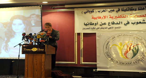 وأشارت عضو المجلس بروين ابراهيم الى ان الكرد السوريين سيبقون الاوفياء لهذا الوطن الحريصين على وحدته وتماسكه وقالوا كلمتهم الفصل لا للمتاجرة بالقضية الكردية ونرفض التجزئة والتقسيم والاحتلال لا للاقصاء والإبعاد والاستئثار والتهميش.