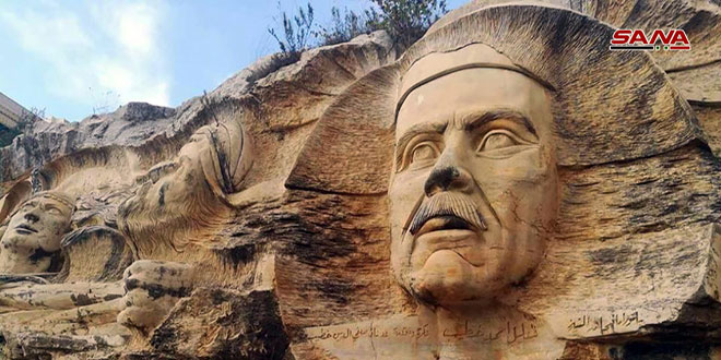 وبين الفنان علاء علي محمد الذي أنجز هذا العمل بمشاركة عدد من النحاتين في العام “2008” في تصريح لمراسل سانا اليوم أن الهدف من هذه المنحوتة تخليد ذكرى القاضي الشيخ خليل الخطيب أحد مساعدي الشيخ صالح العلي والشخص الذي كان يتولى عمليات التواصل والتنسيق مع باقي رجالات الثورة مشيرا إلى أن المنحوتة البانورامية الفريدة بمكانها وحجمها ورمزيتها الوطنية والثقافية وأهميتها السياحية تشكل نهضة مهمة في عالم الفن والنحت والثقافة والإبداع وهي الأضخم من نوعها على مستوى سورية والدول العربية.