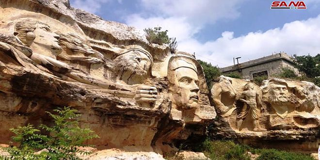 منحوتة بالصخر لأحد رجالات الثورة السورية ضد المستعمر الفرنسي