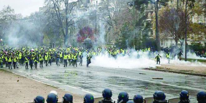 وتحولت الاحتجاجات التي شهدتها مختلف المناطق الفرنسية منذ السابع عشر من الشهر الماضى وشارك فيها عشرات الآلاف ممن أصبح يطلق عليهم حركة “السترات الصفراء” ضد رفع أسعار الوقود وزيادة الضرائب ورفع تكاليف المعيشة إلى معضلة بالنسبة لـ “ماكرون” الذي أطلق كثيرا من الوعود والمبادرات منذ توليه الرئاسة فى أيار عام 2017 لكنه لم يحقق منها شيئا في وقت أظهر استطلاع للرأي نشرت نتائجه أمس هبوط شعبية الرئيس الفرنسي ورئيس وزرائه إلى مستوى قياسي جديد مع تواصل احتجاجات “السترات الصفراء” للأسبوع الثالث على التوالي.