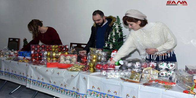 وضم المعرض هدايا وزينة عيد الميلاد وشموعا ومصابيح زينة وحلويات وأنواعا من الشوكولا مصنوعة يدويا وألبسة وإكسسوارات زينة للسيدات وألعاب أطفال.