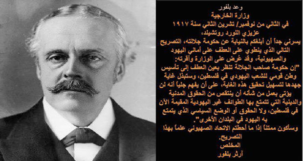 قبل سبعة وتسعين عاما وفي الثاني من تشرين الثاني عام 1917 صدر ما يسمى بوعد بلفور المشؤوم الذي منحت بموجبه الامبراطورية الاستعمارية بريطانيا لليهود الصهاينة وعدا بإقامة كيان لهم في فلسطين على حساب أهلها الأصليين بناء على المقولة المزيفة أرض بلا شعب لشعب بلا أرض.