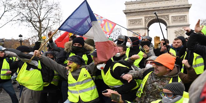 الاحتجاجات التي توالت على مدى أربعة أسابيع فيما سمي يوم (السبت الأسود) شلت العاصمة الفرنسية باريس وشهدت حدوث أعمال عنف ووقوع أكثر من 130 إصابة بين صفوف المحتجين مع إطلاق الشرطة الفرنسية القنابل المسيلة للدموع على المتظاهرين واستخدامها الهراوات والمدرعات لقمعهم وشنها حملات اعتقالات في أنحاء البلاد احتجزت خلالها أكثر من 1700 شخص.