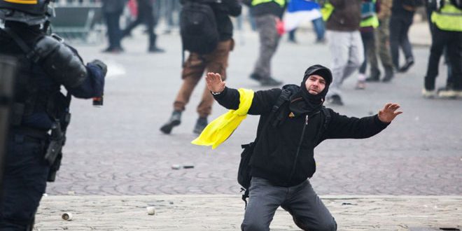 ويستمر محتجو “السترات الصفراء” في حراكهم للأسبوع الرابع على التوالي مطالبين بتحسين أوضاع المعيشة وخفض الضرائب وإيجاد حل لهبوط القيمة الشرائية كما يطالبون الرئيس الفرنسي إيمانويل ماكرون بأن يستمع إليهم متهمين إياه بالعجرفة والتكبر ودعا المحتجون إلى مواصلة المظاهرات يوم السبت المقبل تنديدا بسياسات ماكرون تحت شعار “ارحل ماكرون”.