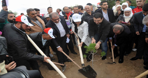 وخلال إطلاق حملتي التشجير والنظافة بالتعاون مع محافظة دمشق قال عضو القيادة القطرية لحزب البعث العربي الاشتراكي رئيس مكتب الفلاحين القطري عبد الناصر شفيع” إن إرادة الشعب السوري وتصميمه على بناء وطنه وخطة إعادة الإعمار التي تقوم بها الحكومة ستغلب إجرام التنظيمات الإرهابية التي دمرت المحاصيل وقطعت الاشجار ولوثت الهواء”.