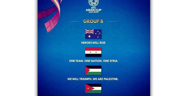 “فريق واحد.. أمة واحدة.. سورية واحدة” هو الشعار الرسمي الذي سيكون متواجدا على حافلة منتخب سورية لكرة القدم في نهائيات كأس آسيا التي ستنطلق في الخامس من الشهر القادم في الإمارات العربية المتحدة.