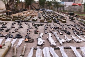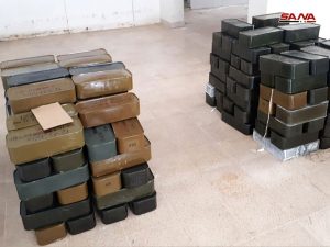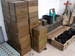 وذكر مصدر في الجهات المختصة في تصريح لموفد سانا إلى درعا أن “عناصر الهندسة عثروا خلال تمشيط المناطق المحررة من الإرهاب على مستودع غرب مدينة نوى بريف درعا الشمالي الغربي فيه كميات كبيرة من الذخيرة والأسلحة منها صواريخ (لاو) بعيارات متنوعة بعضها إسرائيلي المنشأ”.