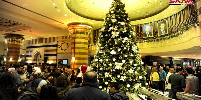 بمناسبة أعياد الميلاد المجيدة وعلى وقع أغاني الفرح والمحبة أضيئت مساء اليوم شجرة الميلاد في فندق الداما روز بدمشق وذلك استمرارا لتقليد سنوي يؤكد معاني العيد في نشر المحبة والسلام والتآخي بين السوريين جميعا.