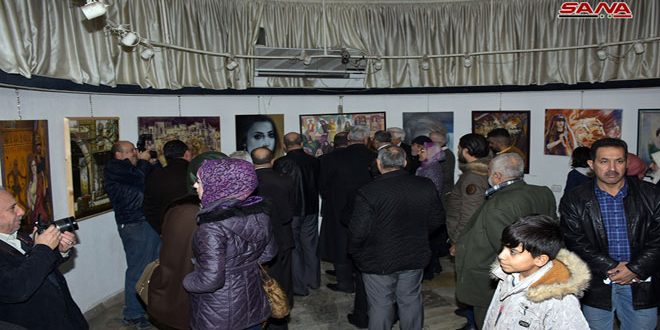 الفنان عبد القادر منافيخي جسد اسم مدينة حلب على هيئة عمل نحتي مصنوع من الخشب أما الفنانة الشابة سوزان حسين فشاركت بلوحة جسدت السجاد الشرقي حيث اعتبرت أن المعرض يضفي قيمة جمالية جديدة وتمجيدا لذكرى شهداء الفن التشكيلي.