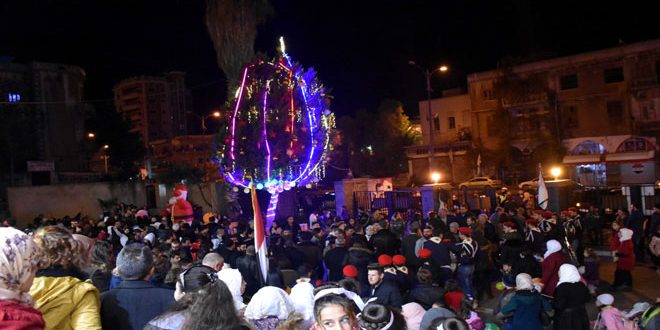 بمناسبة أعياد الميلاد تمت مساء اليوم إضاءة شجرة الميلاد ضمن فعالية “ميلاد الفرح” التي تقيمها مديرية سياحة حمص بالتعاون مع فرع الطلائع وغرفة سياحة المنطقة الوسطى ومطرانية السريان الأرثوذوكس وذلك في ساحة المركز الثقافي بحمص.