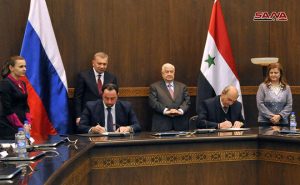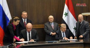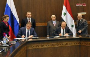 ووقع الجانبان الاتفاق الإطاري لتنفيذ خارطة الطريق للتعاون التجاري والصناعي وقعه الدكتور عماد الصابوني رئيس هيئة التخطيط والتعاون الدولي وغيورجي كالامانوف نائب وزير الصناعة والتجارة الروسي .