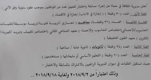 وكانت مديرية ثقافة حماة أعلنت في شهر آب الماضي عن مسابقة لتعيين 30 عاملاً من الفئة الأولى و 60 عاملاً من الفئة الثانية.