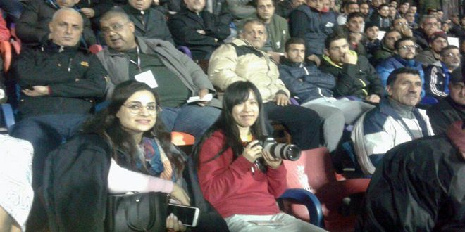 وصفت المصورة الصحفية الصينية لو يو القادمة من مدينة شنغهاي أجواء مباراة تشرين والاتحاد ضمن منافسات الجولة الأخيرة من مرحلة الذهاب لدوري أندية الدرجة الممتازة بأنها لوحات “كرنفالية رائعة ولا تختلف عن أجواء مباريات كأس العالم والدوري الأوروبي”.