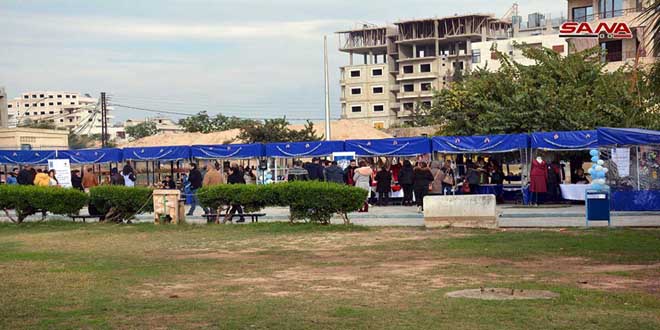 افتتح في حديقة الأندلس في اللاذقية اليوم مشروع سوق اللاذقية لتصريف منتجات المشاريع الصغيرة والمتوسطة .