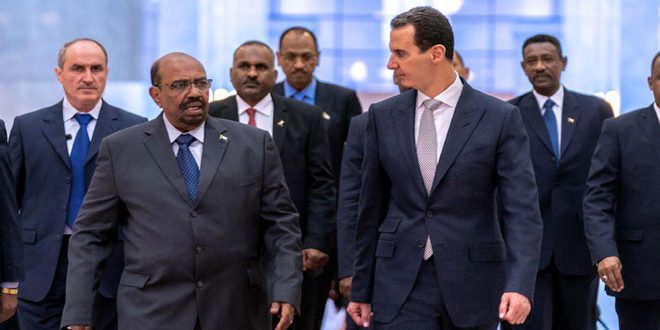 وأشار الرئيسان الأسد والبشير إلى أن ما يحصل في المنطقة وخاصة في الدول العربية يؤكد ضرورة استثمار كل الطاقات والجهود من أجل خدمة القضايا العربية والوقوف في وجه ما يتم رسمه من مخططات تتعارض مع مصالح دول المنطقة وشعوبها.