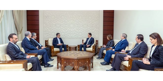 استقبل السيد الرئيس بشار الأسد مساء اليوم السيد حسين جابري أنصاري كبير مساعدي وزير الخارجية الإيراني للشؤون السياسية الخاصة والوفد المرافق له.