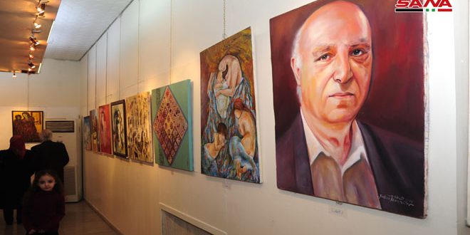 اجتمعت أعمال 42 فنانة وفنانا ينتمون إلى عدة أجيال من التشكليين مساء اليوم في معرض جماعي تكريما للفنان التشكيلي الدكتور عبد المنان شما في المركز الثقافي بأبو رمانة.