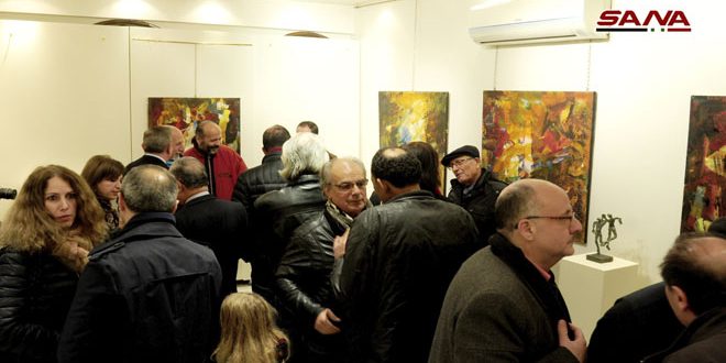 خمسة من الفنانين التشكيليين السوريين قدموا نتاجاتهم في التصوير الزيتي والنحت بمعرض مشترك ضمن فعاليات أيام الفن التشكيلي السوري.