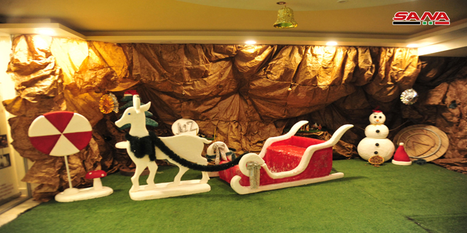 مشهد الزي التنكري لشخصية بابا نويل بثوبه الأحمر والأبيض وجرسه الذي يعمد العديد من الشبان إلى ارتدائه والوقوف داخل السوق وأمام بعض محال الهدايا أصبح كذلك أحد مظاهر العيد كما هو حال الشاب مجد الحلبي الذي يقول: إنه يحاول زرع البسمة على وجوه الأطفال في الوقت الذي يحرص فيه أهالي الأطفال على اختيار العاب لأبنائهم لتصلهم ليلة عيد الميلاد من أجل زرع الفرح والبهجة بقلوبهم كما فعل سهيل عبدو وغيره كثيرون .