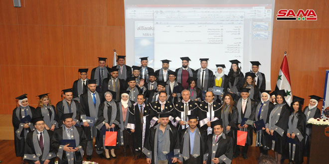 احتفل المعهد العالي لإدارة الأعمال “هبا” اليوم بتخريج الدفعة الخامسة من ماجستير التأهيل والتخصص في إدارة الأعمال في اختصاص إدارة تنفيذية ومصارف إسلامية ضمت 70 خريجا وخريجة وذلك بالتعاون مع بنك البركة سورية.