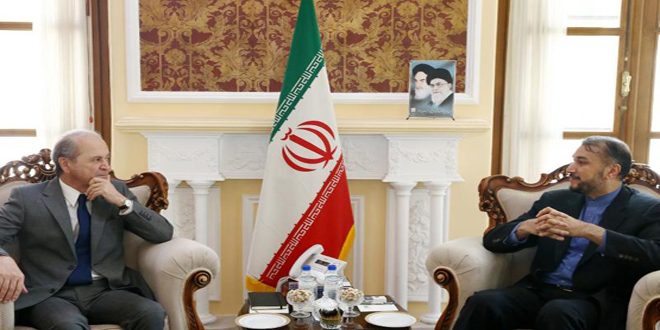 ونقلت وكالة الأنباء الإيرانية “ارنا” عن عبد اللهيان قوله خلال لقائه اليوم المبعوث الخاص للرئيس الفرنسي في الشأن السوري فرانسوا سينيمو: إنه على منظمة الأمم المتحدة أن تولي الاهتمام إلى تسوية سائر المشاكل في سورية بما في ذلك إيجاد حل سياسي للأزمة وعودة النازحين وإعادة إعمار سورية ودحر الإرهابيين.