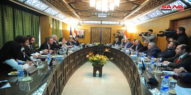 بحث أعضاء مجلس إدارة غرفة تجارة دمشق وعدد من رجال الأعمال السوريين مع النائب الفرنسي السابق تييري مارياني والوفد المرافق سبل إعادة تنشيط العلاقات التجارية والاقتصادية بين سورية وفرنسا.