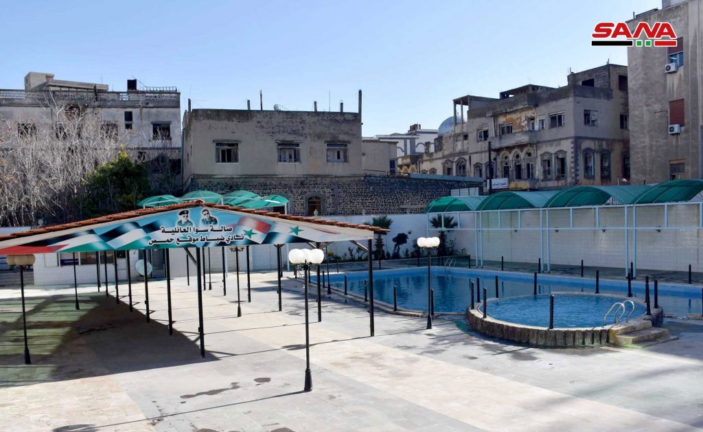 من جهته بين مدير نادي موقع ضباط حمص العميد فضل رمضان عبود أن عملية تأهيل النادي استمرت عامين حيث عملت الورشات بشكل متواصل وبجهود حثيثة شملت تأهيل الصالات والفندق والمسبح وغيرها من الأقسام الأخرى وهو الآن جاهز لاستقبال رواده من ضباط وذويهم وأسر الشهداء.