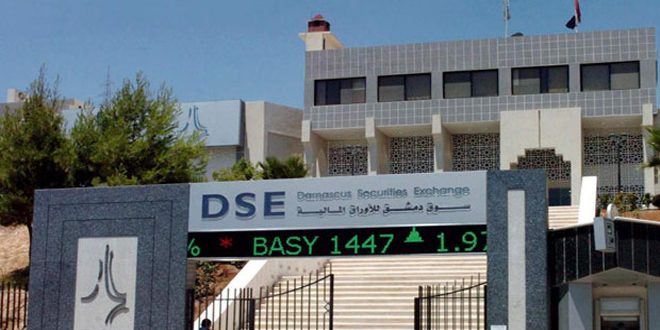 وشهد السوق خلال هذا الأسبوع تداول أسهم 8 شركات سجلت أسهم ثلاث منها ارتفاعا عن أسعار إغلاق الأسبوع الماضي وهي سهم شركة العقيلة للتأمين التكافلي بنسبة 52ر50 بالمئة وأغلق على سعر 88ر427 ليرة وسهم بنك سورية والخليج بنسبة54ر6 بالمئة وأغلق على سعر 14ر248 ليرة وسهم بنك سورية الدولي الإسلامي بنسبة 94ر0 بالمئة واغلق على سعر 54ر937 ليرة.