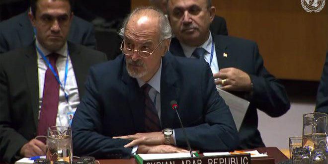 وأوضح الجعفري أنه بعد مرور نحو ثماني سنوات من الحرب الإرهابية على سورية لا بد من التوقف عند مفارقة عجيبة لدى بعض الدول تتمثل في تعارض واضح بين أقوالها وأفعالها متسائلا كيف تتسق أقوال هذه الدول بضرورة احترام سيادة سورية واستقلالها ووحدة أراضيها وبأن الحل يجب أن يكون سورياً سورياً وبقيادة سورية دون أي تدخل خارجي مع أفعالها ولاسيما لجهة عدوانها العسكري المباشر على سورية وغزوها أجزاء منها ودعمها للمجموعات الإرهابية وإنشائها مجموعات سياسية لا هدف لها سوى عرقلة الحل السوري السوري وفرض الوصفات المسبقة التي ثبت فشلها ومحاولاتها البائسة لرسم مشهد صدامي وتوزيع جديد للأدوار بهدف زعزعة الاستقرار في المنطقة عبر تأليب دولها ضد بعضها البعض خدمة لـ “إسرائيل” وحلفائها وبهدف تصفية القضية الفلسطينية.