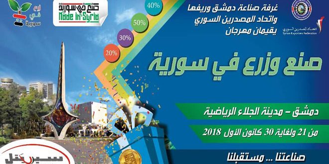 يبدأ اليوم مهرجان “صنع وزرع في سورية” الذي تقيمه غرفة صناعة دمشق وريفها واتحاد المصدرين السوري على أرض مدينة الجلاء بدمشق.