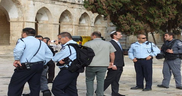 وفي آخر الاعتداءات التي سجلت على المسجد الأقصى المبارك أقدم نائب رئيس الكنيست الإسرائيلي المتطرف موشيه فيجلين اليوم على اقتحام المسجد في انتهاك استفزازي وعدواني فاضح وذلك في مقابل تشديد سلطات الاحتلال الإسرائيلي إجراءاتها بحق المصلين الفلسطينيين بعد أن منعتهم قبل أيام من دخول باحة المسجد في البلدة القديمة بالقدس المحتلة.