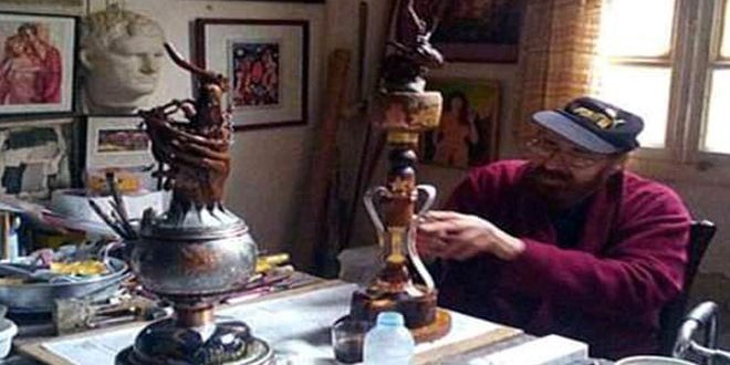 حول منزله في درعا إلى معرض فني ضم أكثر من 200 من اللوحات الفنية والمنحوتات والتحف والنصب التذكارية.