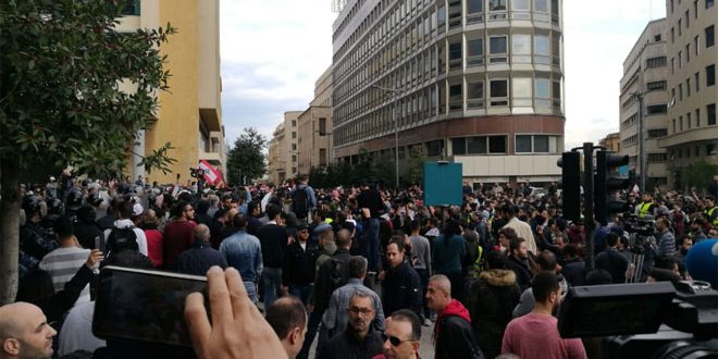 وكانت حشود من اللبنانيين خرجت الأسبوع الماضي في مظاهرة ضد الفساد نظمها الاتحاد الوطني لنقابة العمال والمستخدمين في لبنان والحزب الشيوعي اللبناني وشارك فيها ممثلو النقابات والاتحادات والقوى الحزبية من أمام مصرف لبنان واتجهت إلى ساحة رياض الصلح وسط بيروت.