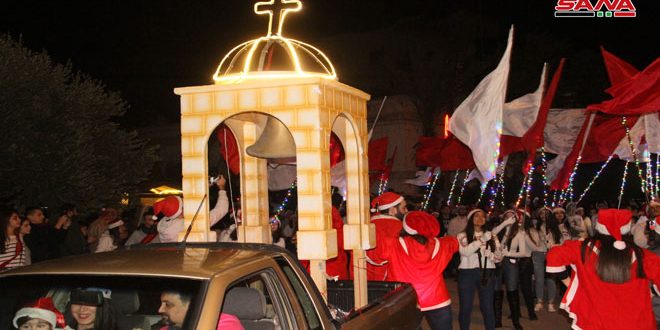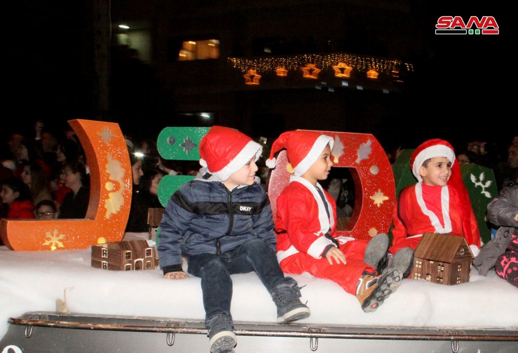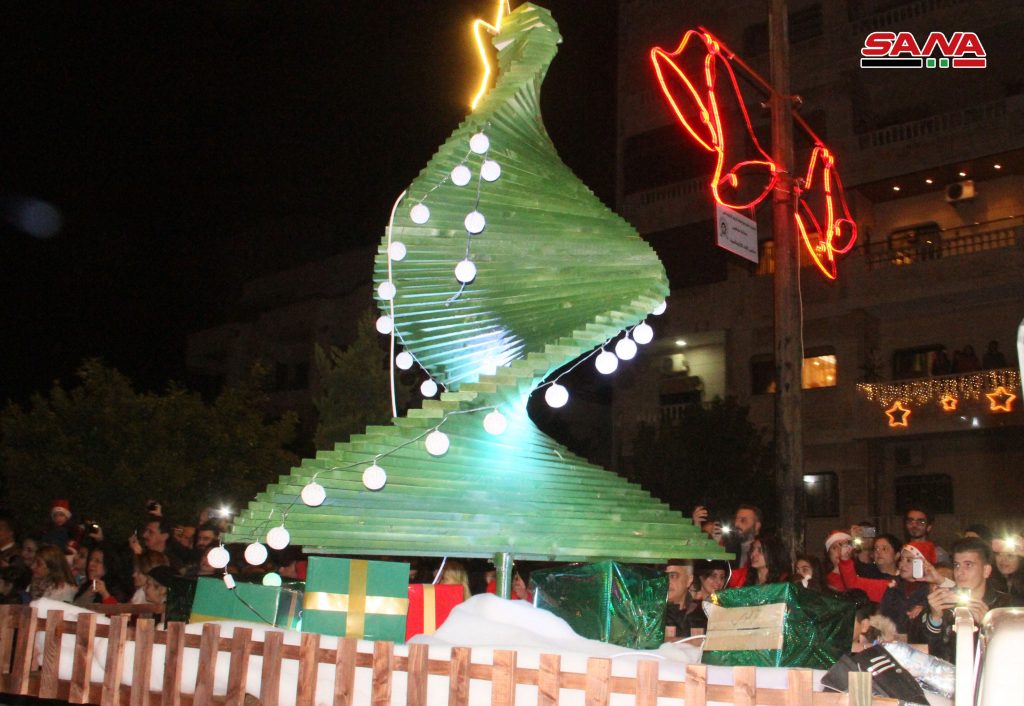 احتفالا بعيد الميلاد المجيد أقيم مساء اليوم كرنفال الميلاد الذي انطلق من أمام كنيسة مار دانيال في حي الحمرات بطرطوس ليجول في مختلف شوارع المدينة ناشرا البهجة والفرح فيها.