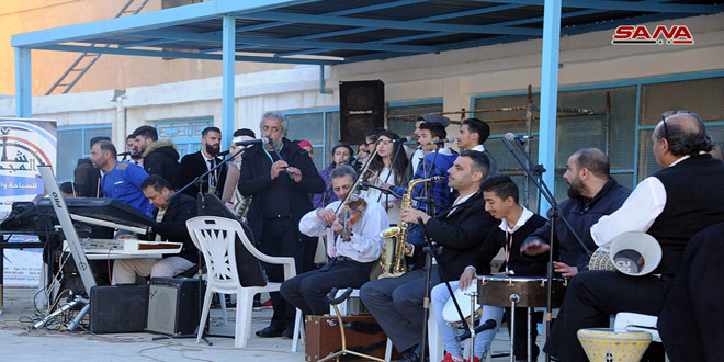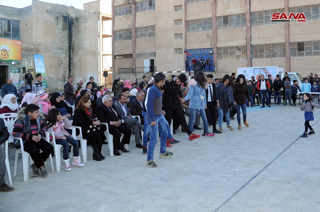 وتضمن الحفل الذي أقيم بالتزامن مع فعاليات مهرجان جينا نعيدكم للتسوق المقام في الثانوية الصناعية بازرع فقرات فنية راقصة وكورالا ودبكات تراثية في أجواء من الفرح والبهجة وسط توزيع هدايا.