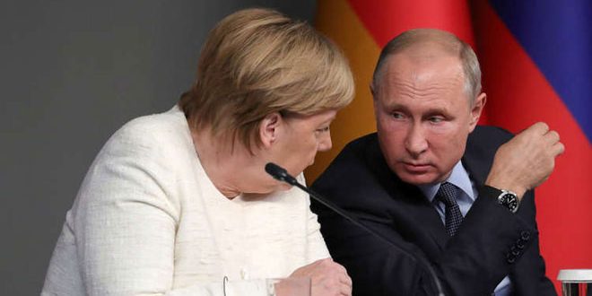 بحث الرئيس الروسي فلاديمير بوتين مع المستشارة الألمانية أنجيلا ميركل في اتصال هاتفي اليوم تطورات الوضع في سورية.