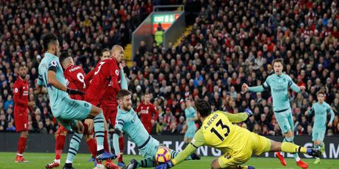 وكانت هذه أول مرة يتأخر فيها فريق المدرب يورجن كلوب على أرضه منذ الـ30 من كانون الأول 2017 لكن الأمر لم يدم سوى ثلاث دقائق إذ أدرك ليفربول التعادل سريعا بعد انطلاقة نجمه محمد صلاح داخل منطقة الجزاء وسقوطه تحت ضغط مدافعي أرسنال لتتهيأ الكرة أمام فيرمينو الذي وضعها في المرمى الخالي.