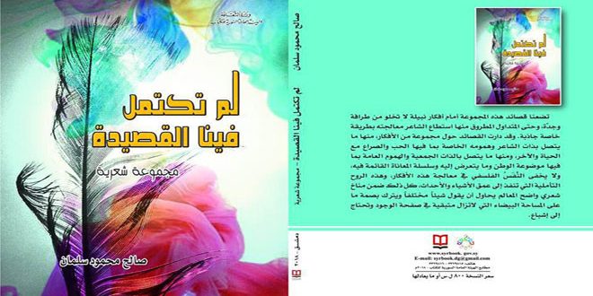 يقدم الشاعر صالح سلمان في مجموعته الشعرية الصادرة حديثا تحت عنوان (لم تكتمل فينا القصيدة) تشكيلا فنيا مع ألفاظ دلالية متكونة ضمن موسيقا منضبطة وفق ترتيب واحد متناغم.