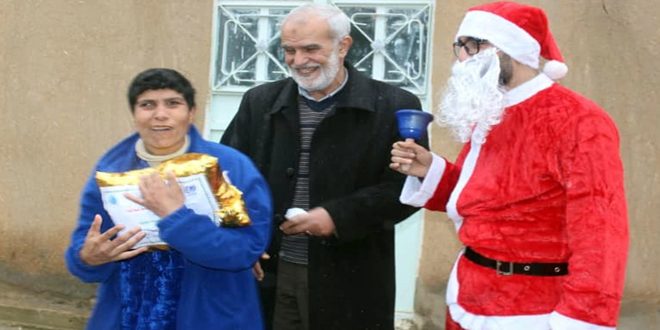 بمناسبة أعياد الميلاد ورأس السنة الميلادية وزعت جمعية المودة الخيرية اليوم الهدايا والسلل الغذائية على 42 عائلة في مدينة الدرباسية بمحافظة الحسكة ممن لديها أطفال ذوو إعاقة.